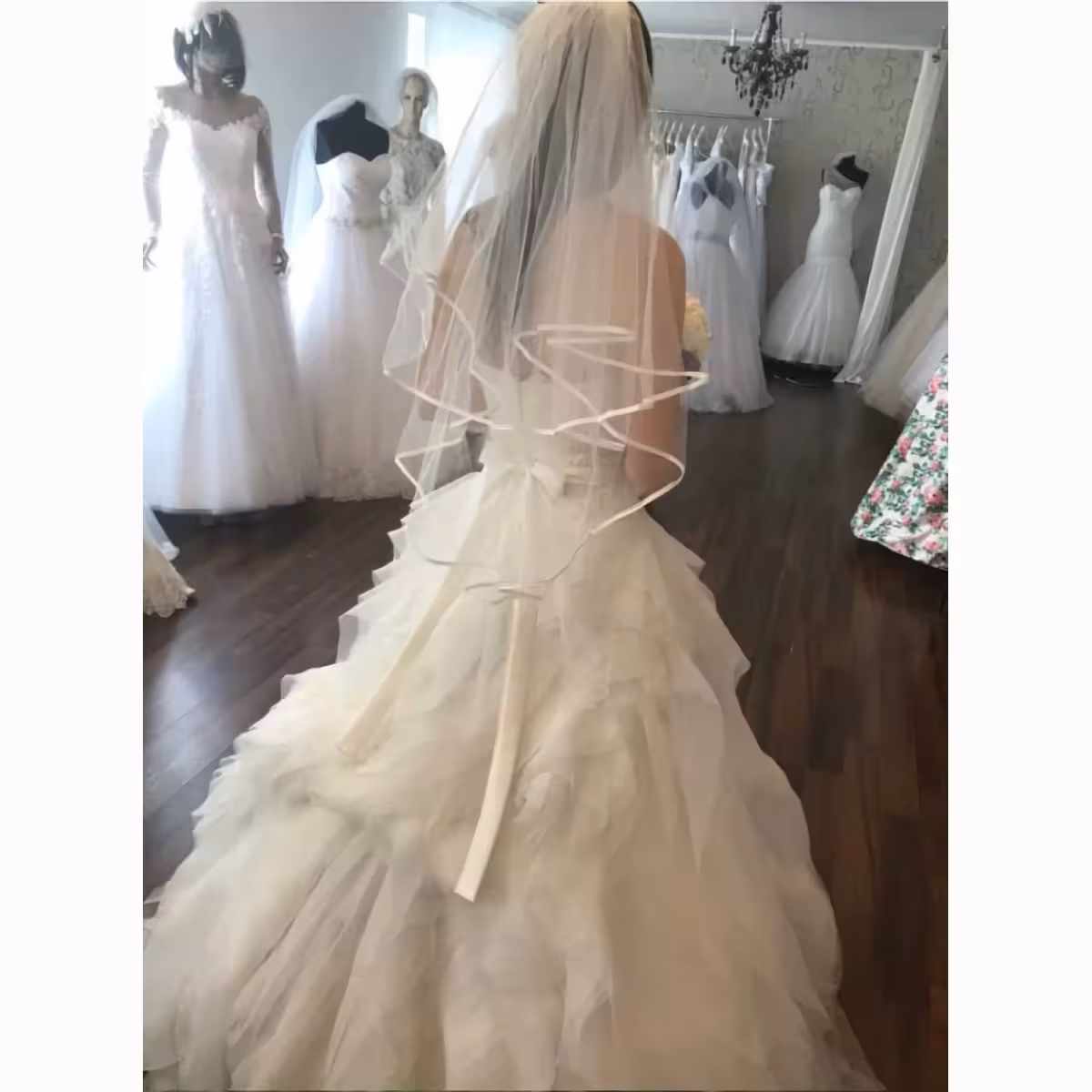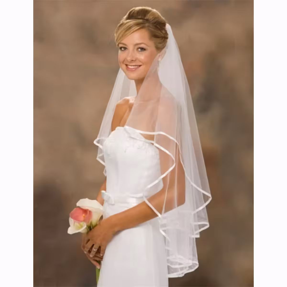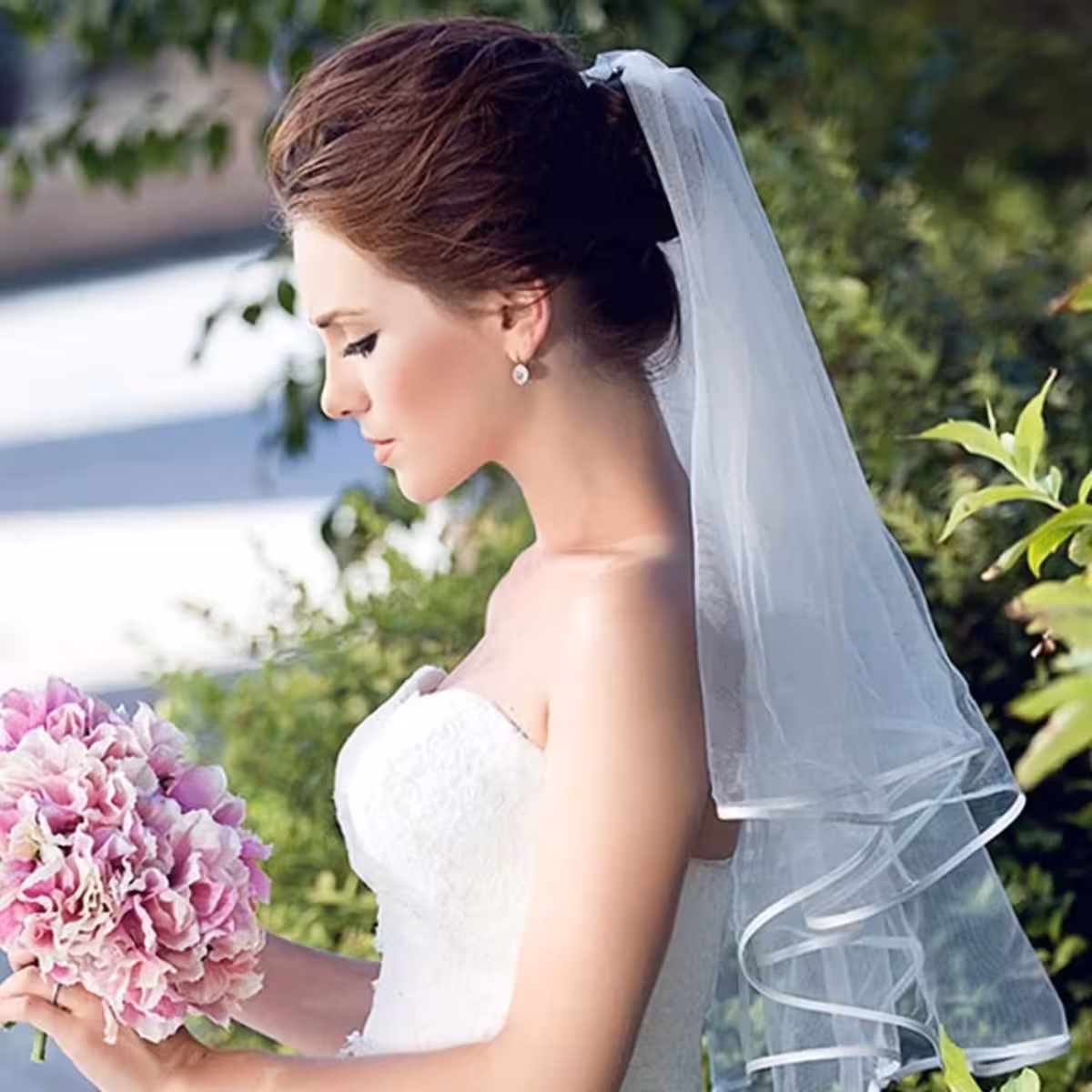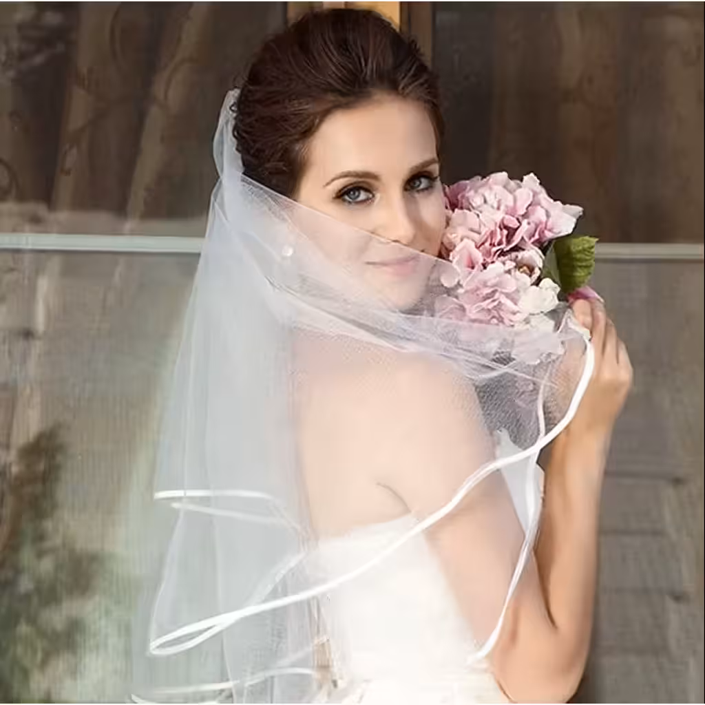 Lenyűgöző menyasszonyi fátyol, ideális a 2025-ös esküvőkre, kiváló minőségű finom tüllből készült, elegáns szegéllyel megerősítve. Ez a fehér fátyol kifejezetten a modern menyasszonyok számára készült, akik kifinomult és praktikus kiegészítőt keresnek.