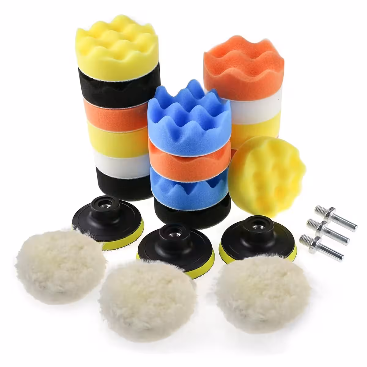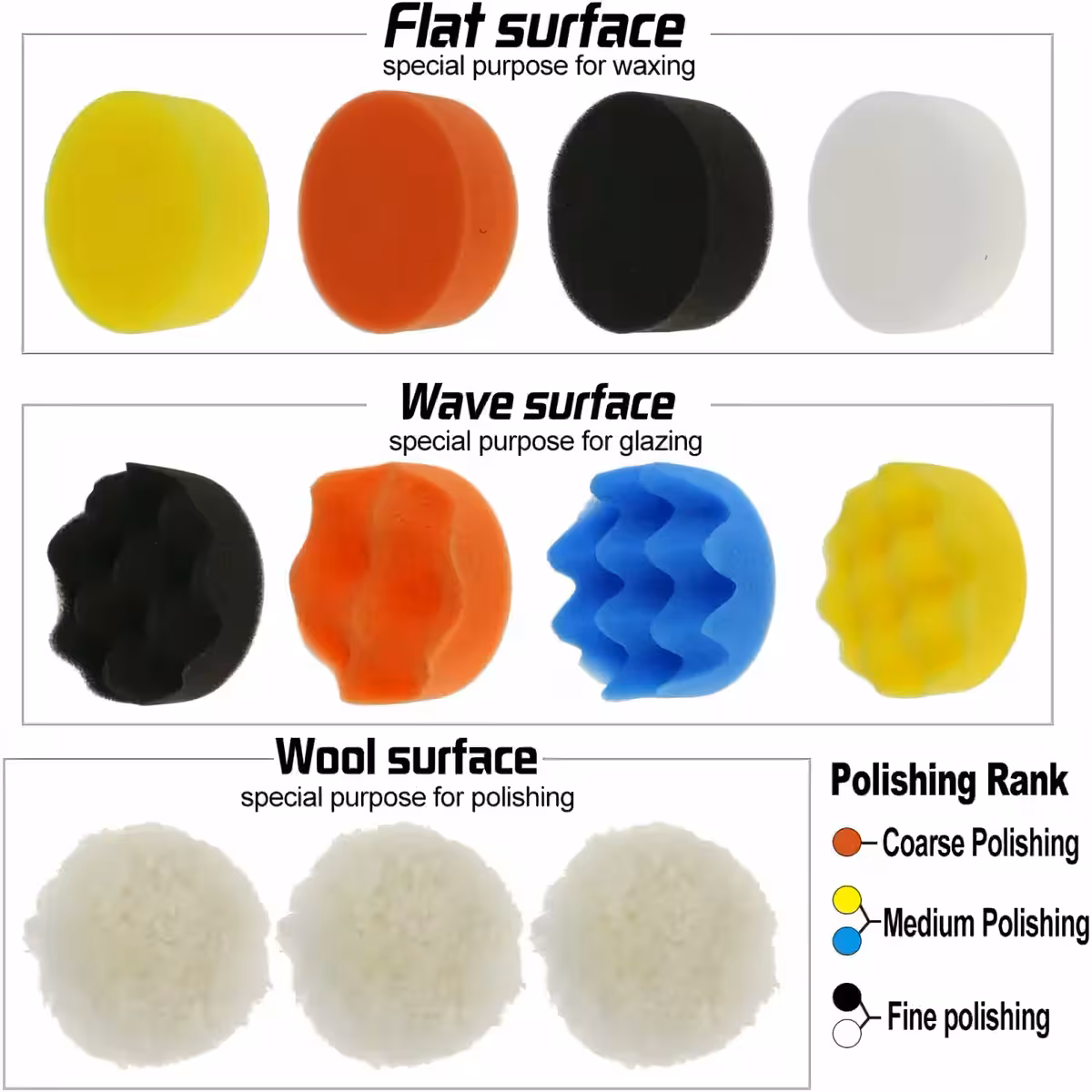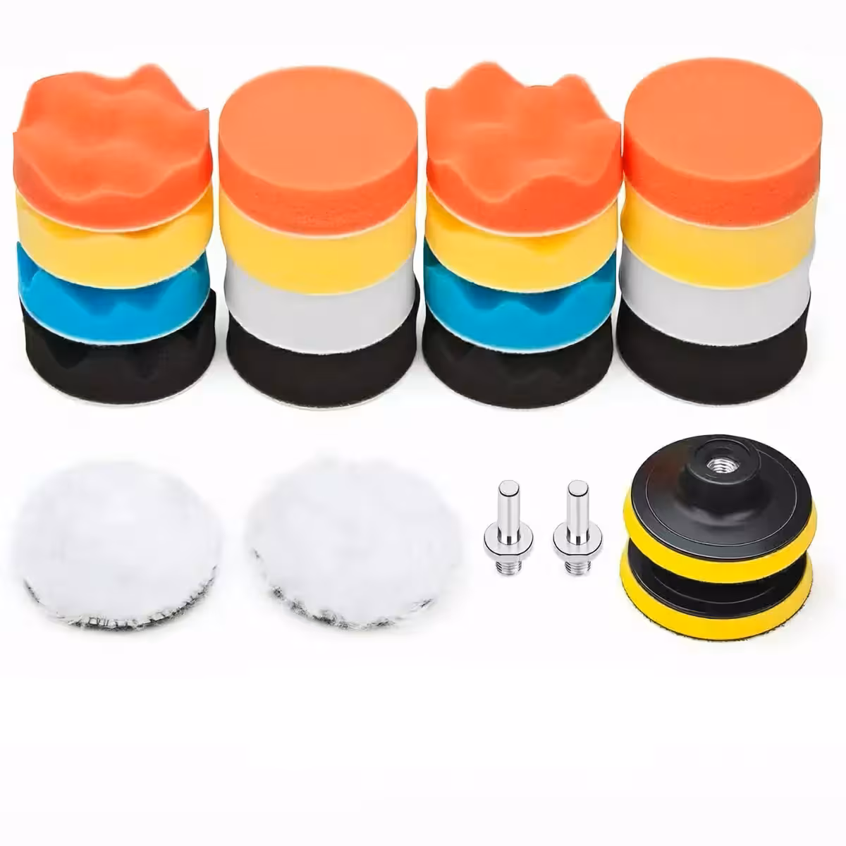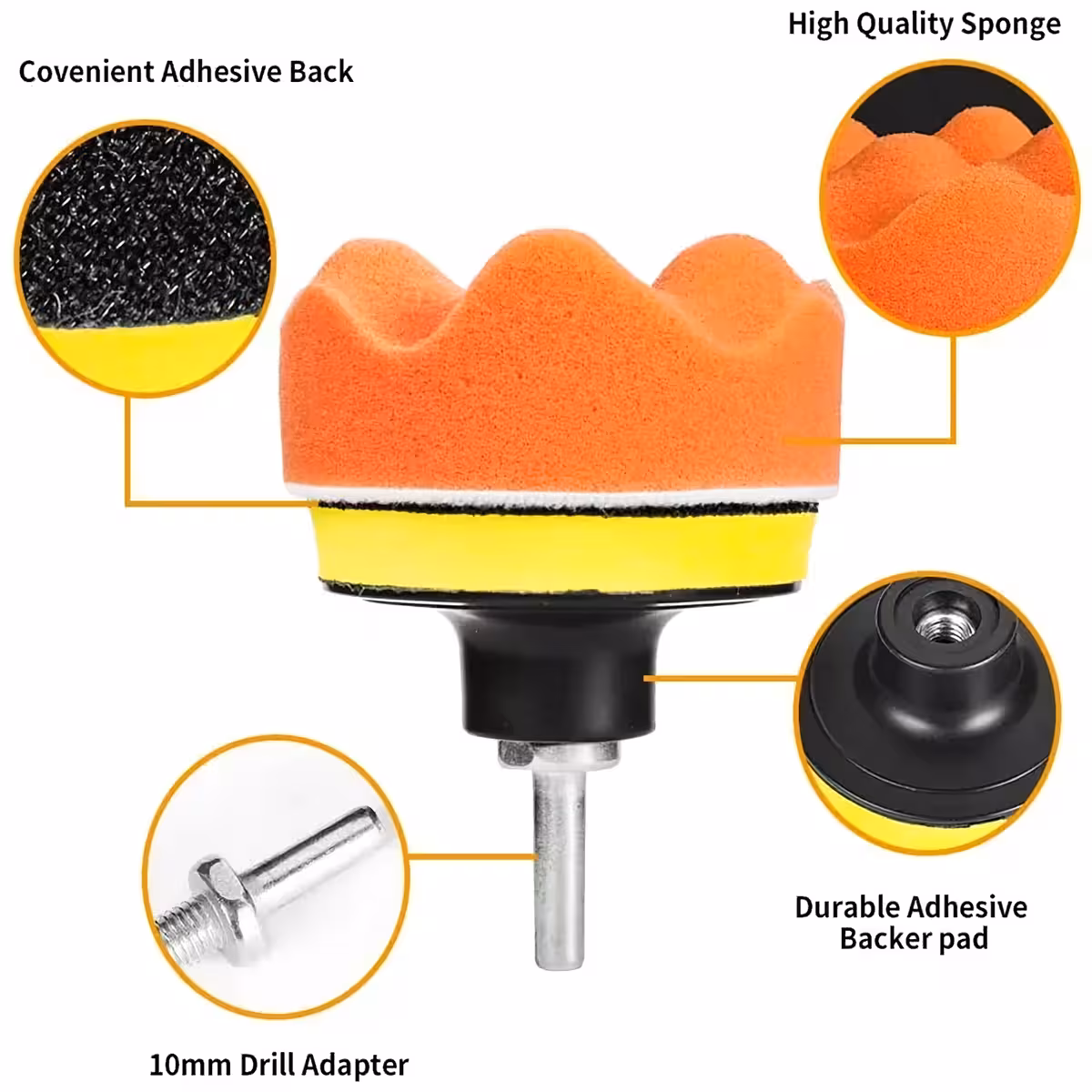 Ez a teljes autó polírozó párna és korong készlet a festett felületek, például autókarosszériák, műanyag, fém vagy üveg alkatrészek polírozására és karbantartására lett tervezve. Bármilyen fúrógéppel vagy polírozó géppel használható a 3 mellékelt adapter segítségével.