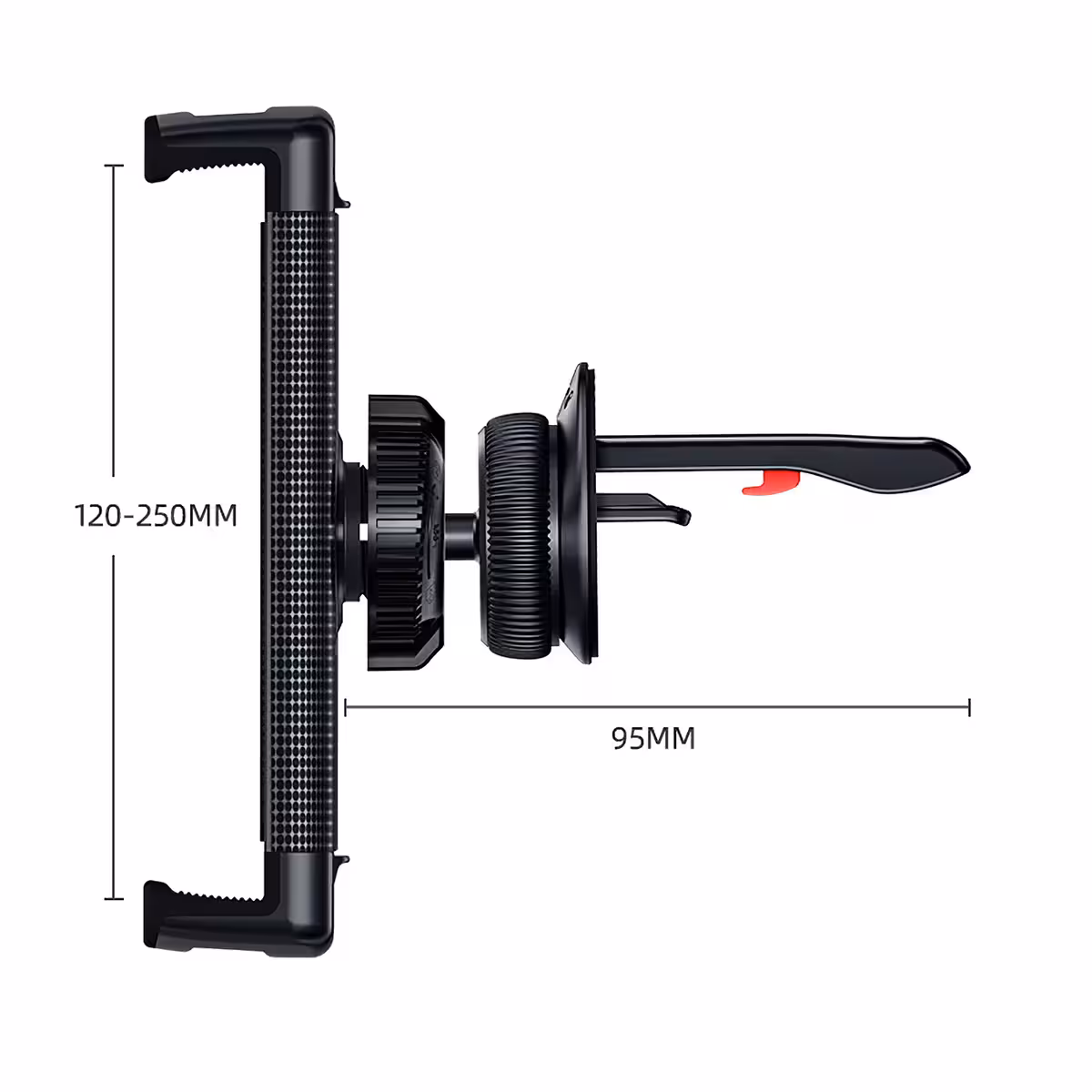 Ez az autós tablet tartó úgy lett tervezve, hogy biztonságosan rögzítse a 7″, 8″, 10″, 11″ és 12 inch méretű tableteket. Állítható kialakításának köszönhetően stabil tartást biztosít anélkül, hogy a vezető látóterét akadályozná vagy kényelmetlenséget okozna.