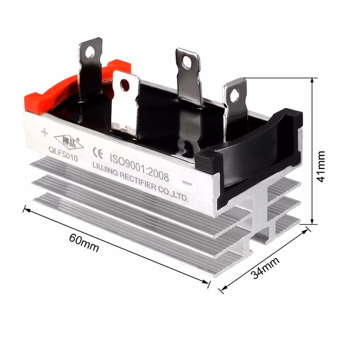 Egyfázisú egyenirányító híd 50A 1200V hűtőbordával – 4 diódás AC-DC egyenirányító