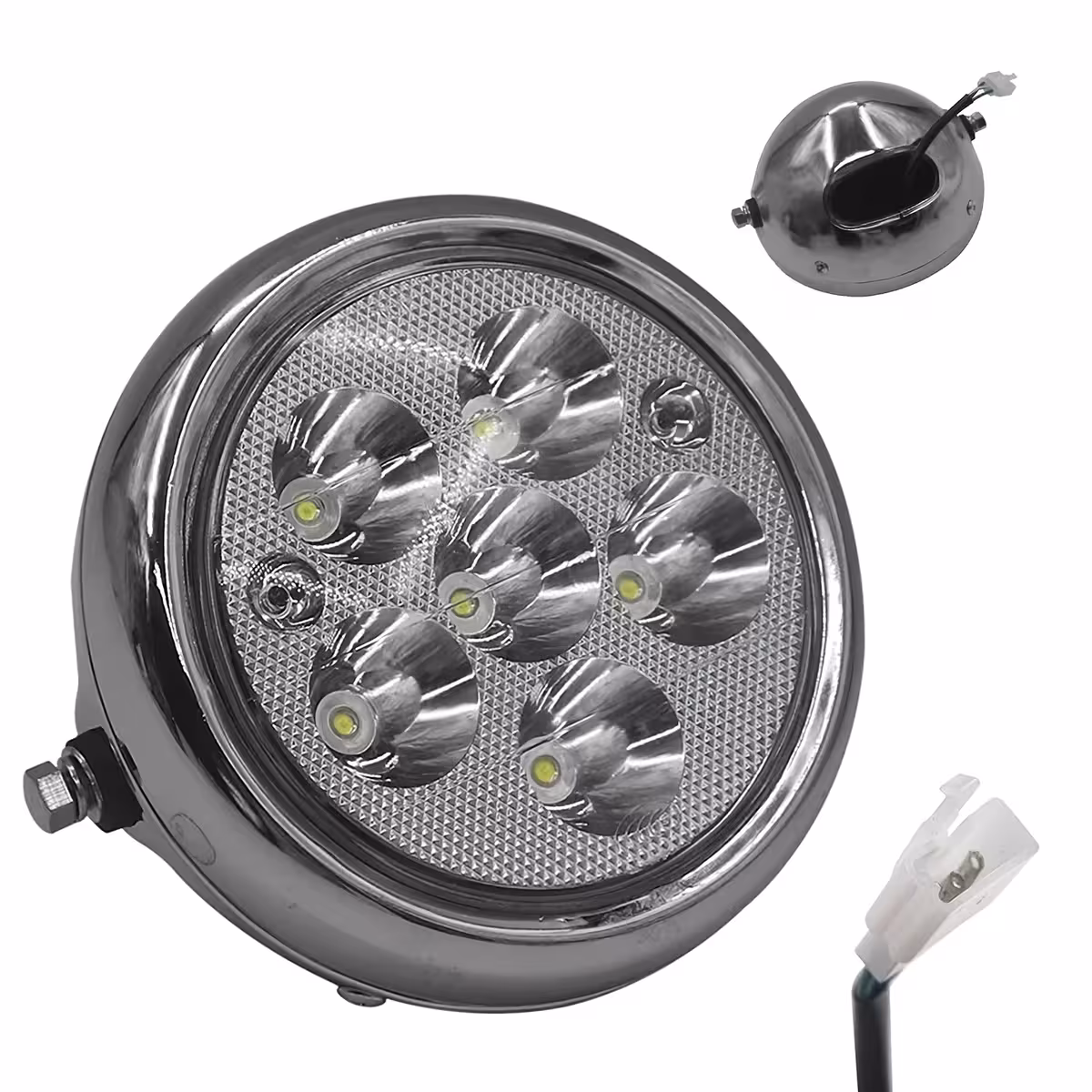 Ez az 5 hüvelykes kerek LED fényszóró kompatibilis Citycoco és Harley elektromos rollerekkel, motorkerékpárokkal és ATV-kkel, erős és hatékony megvilágítást biztosítva. 12V–80V-os rendszereken működik, élettartama akár 50 000 óra. A 6 LED-es kialakítás egyenletes fényeloszlást garantál.