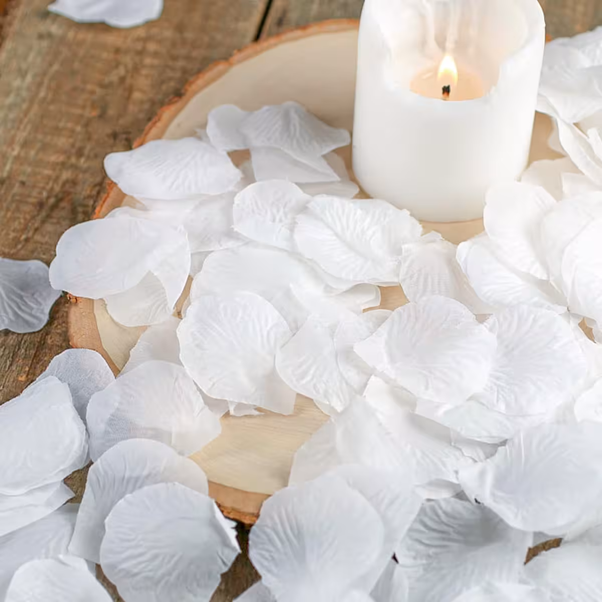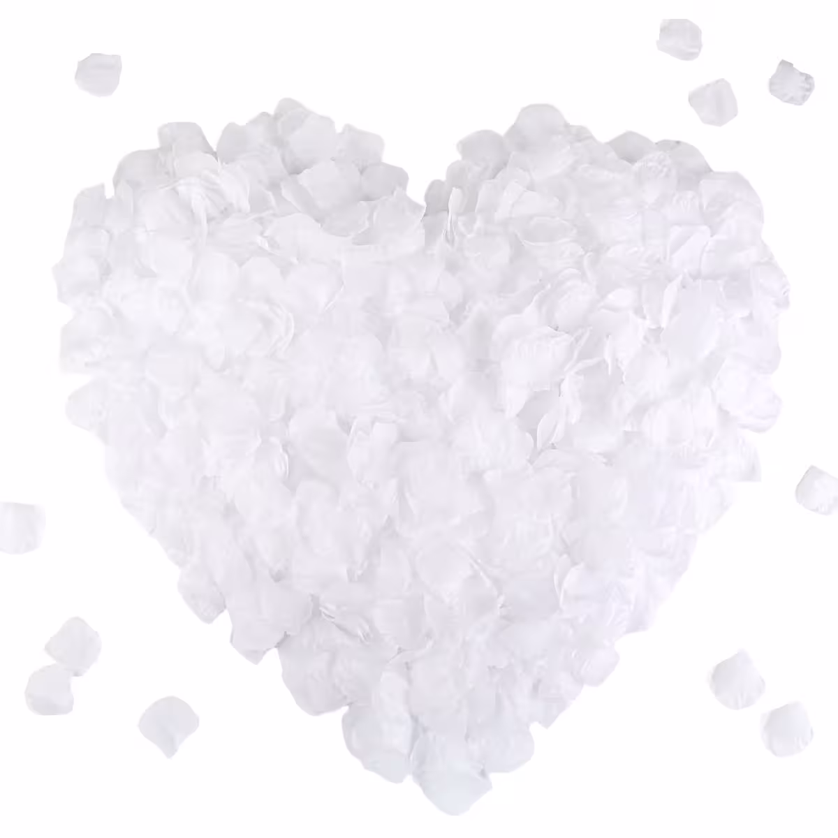 Fehér mű rózsaszirom készlet, minőségi textil anyagból, amely nem foltosodik és nem ragad.