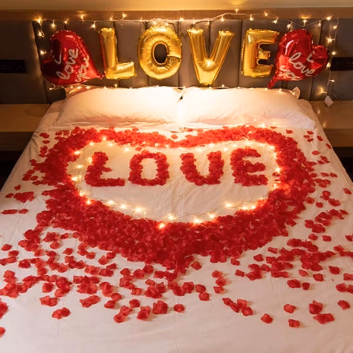 A rózsák mindig is a szerelem és a szenvedély szimbólumai voltak. Ezek a szirmok szív alakban, betűk formájában, szórva a szobában vagy az ágyra helyezve, személyes hangulatot adnak a különleges pillanatoknak.