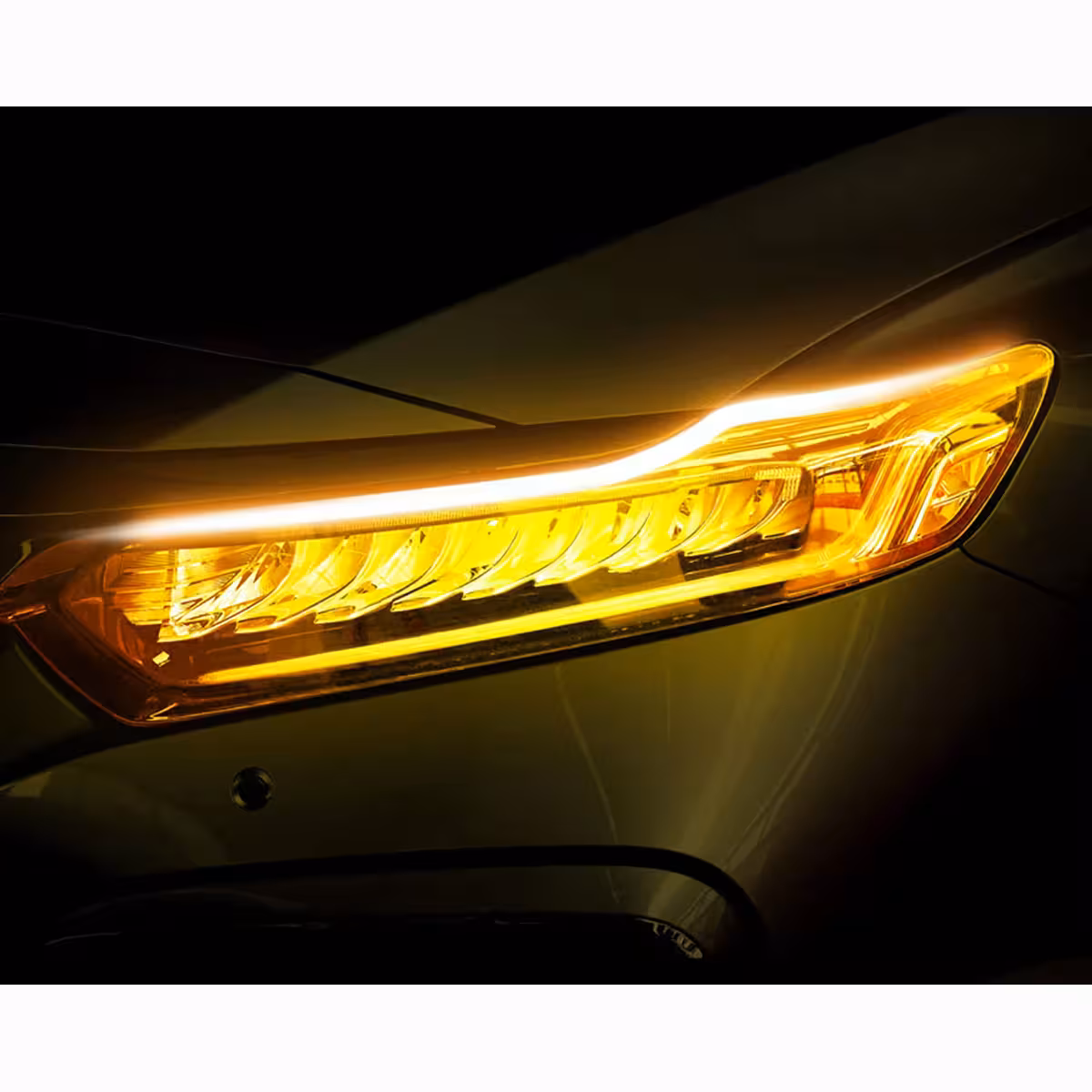 2 darab vékony, rugalmas szalag szett, bármilyen autóhoz kompatibilis, egyenletes nappali fény (DRL) és szekvenciális / dinamikus irányjelzés. Öntapadós szalaggal a könnyű felszerelés érdekében.