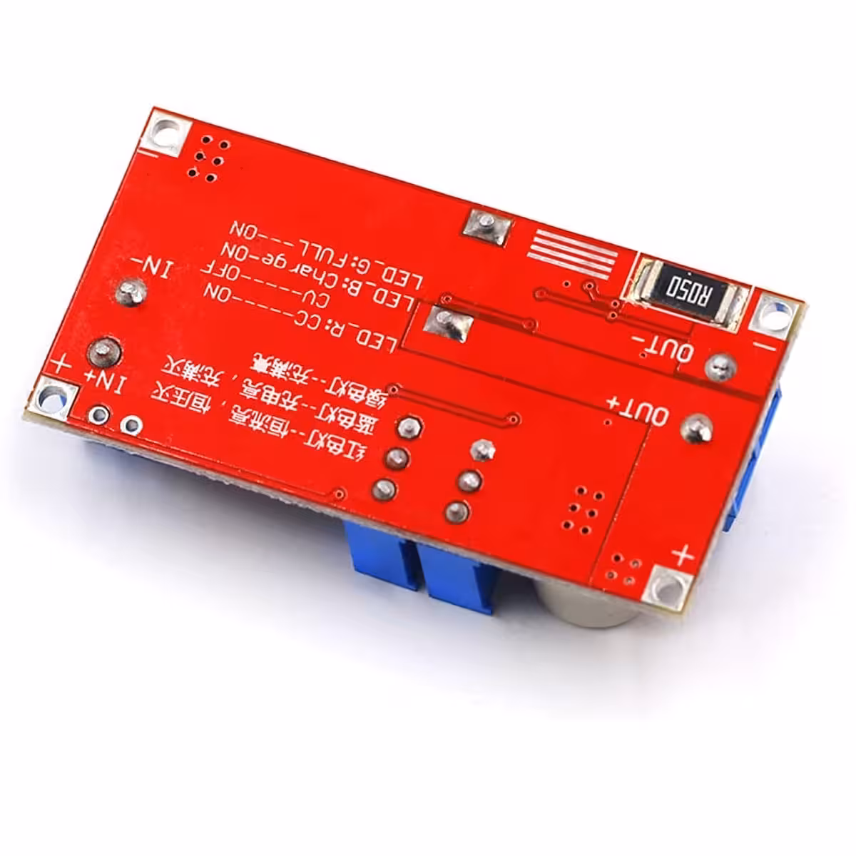Az XL4015 modul egy nagy hatékonyságú DC-DC step-down konverter, amely 1,25V és 36V közötti állítható kimeneti feszültséget és akár 5A áramot biztosít (tartósság érdekében ajánlott max. 4,5A). Támogatja a feszültség (CV) és áram (CC) független beállítását, ideális akkumulátorok töltésére és LED-ek táplálására.