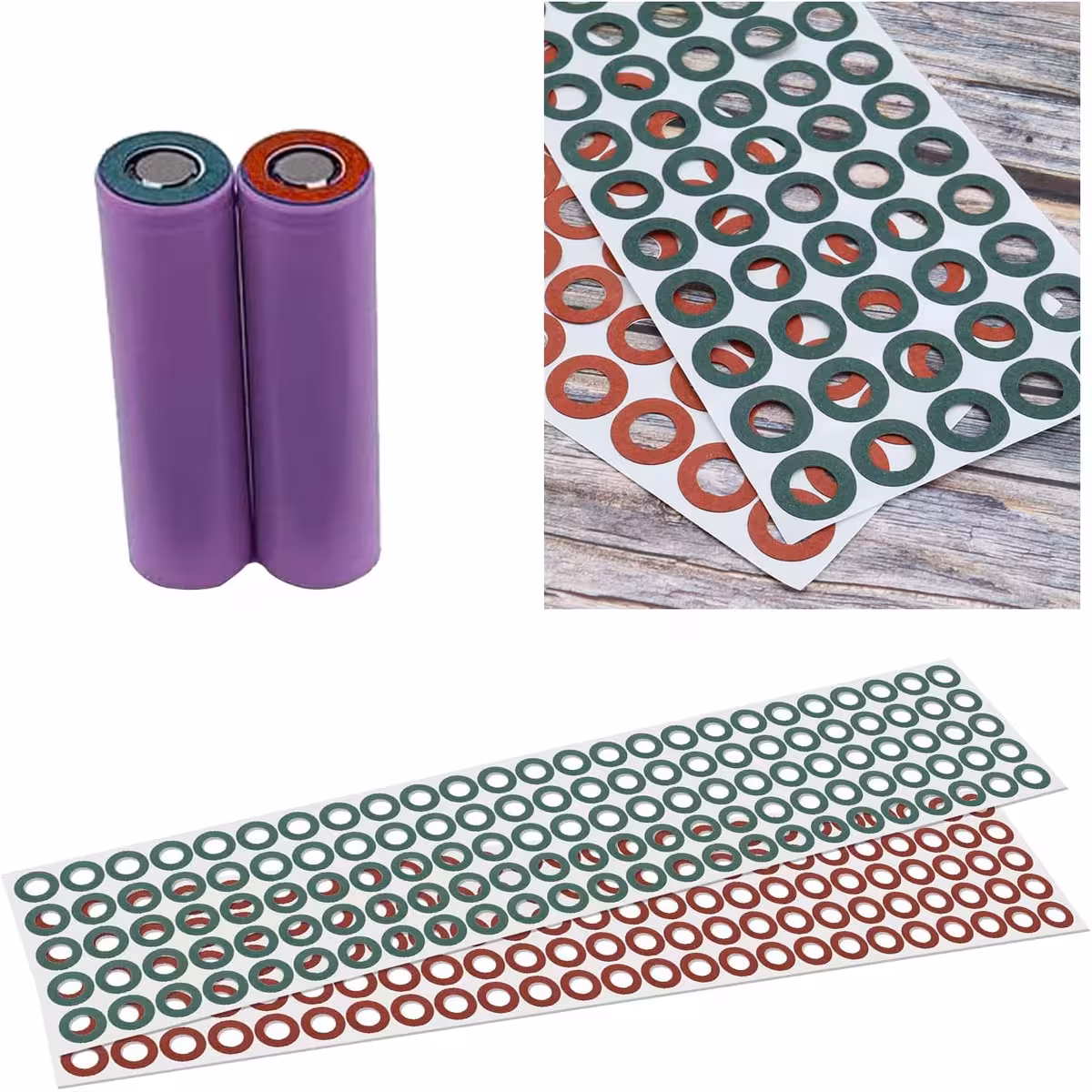 Li-Ion 18650 akkumulátor szigetelőpapír – 100 darabos készlet (50 zöld + 50 piros)