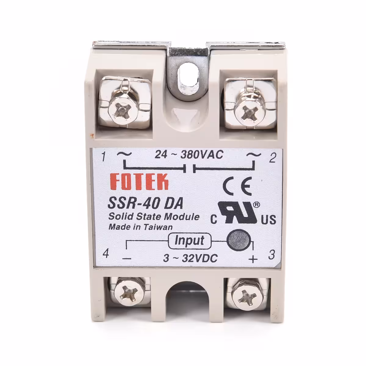 Az SSR-40A relé érintésmentes kapcsolást biztosít AC terhelésekhez 24–380VAC feszültségnél, 3–32V DC vezérlőjellel, maximális áramerősség 40A, gyors kapcsolás szikra nélkül. Optikai izoláció és TRIAC kimenet.