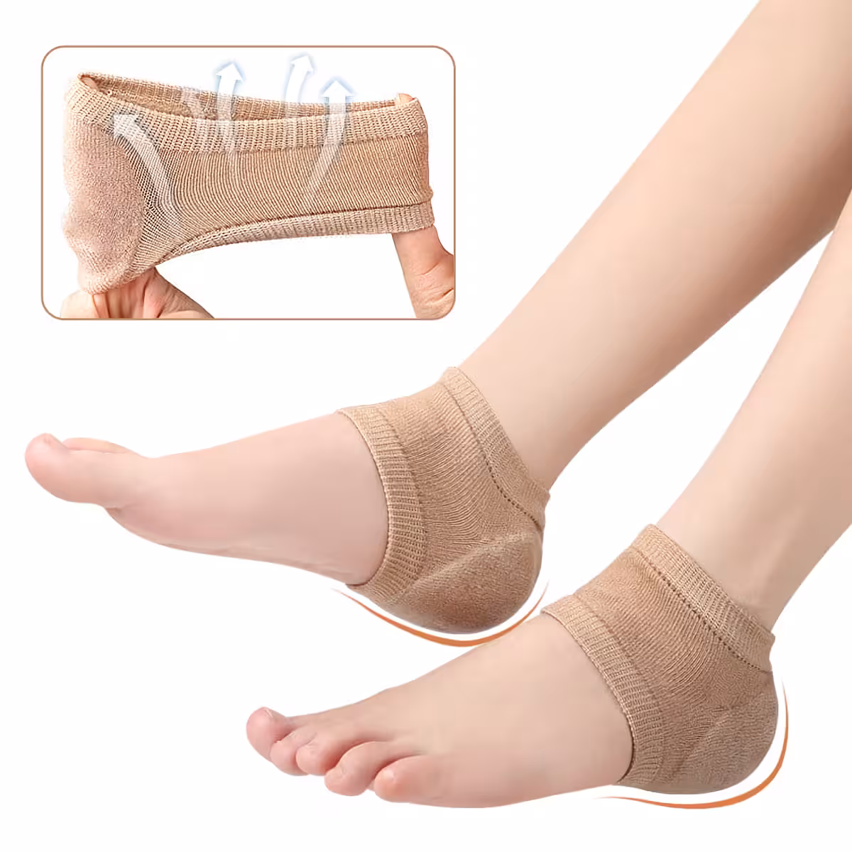 Helyezzük a talpbetéteket vagy párnákat a sarkakra, és viseljük 2–3 órán át vagy éjszakára.