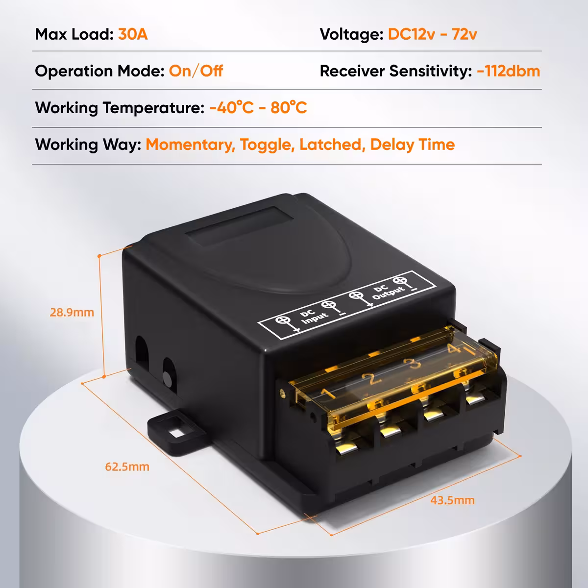 A relé széles feszültségtartományt támogat (8V–80V DC) és akár 30A nagy áramot, így alkalmas professzionális alkalmazásokhoz és DIY projektekhez is.