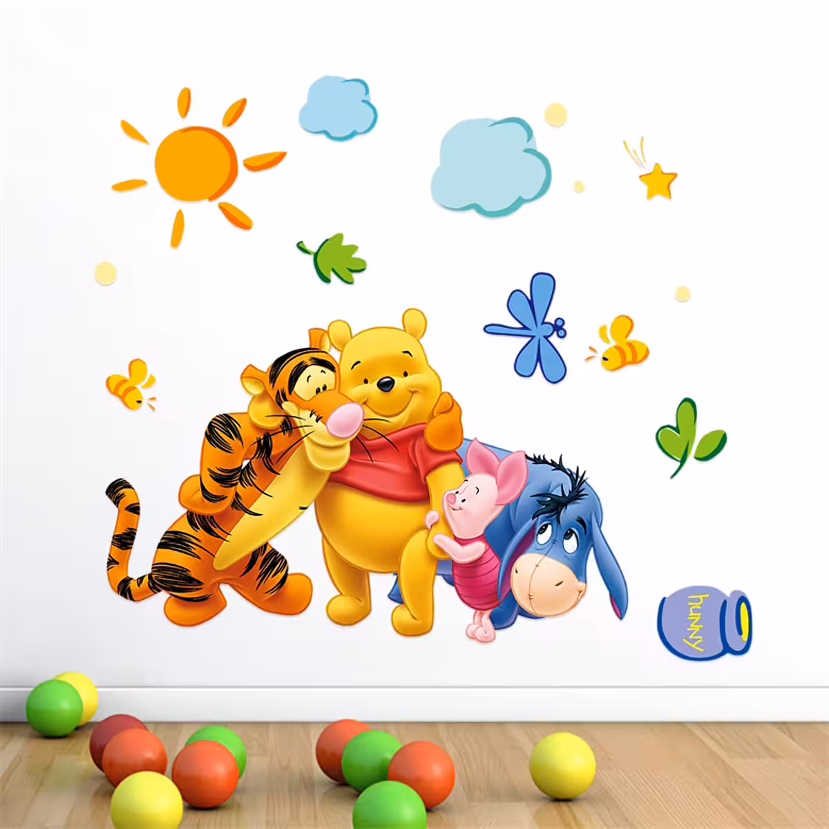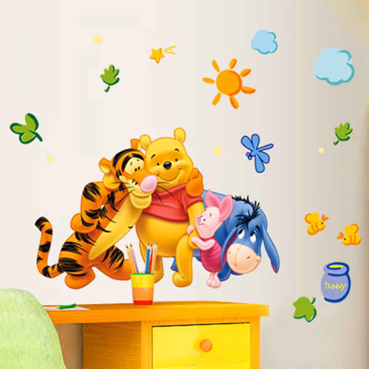 Winnie the Pooh karakter matricák falra, ideálisak öntapadós dekorációs matricaként a gyerekszoba, óvoda vagy játszótér berendezéséhez és díszítéséhez.